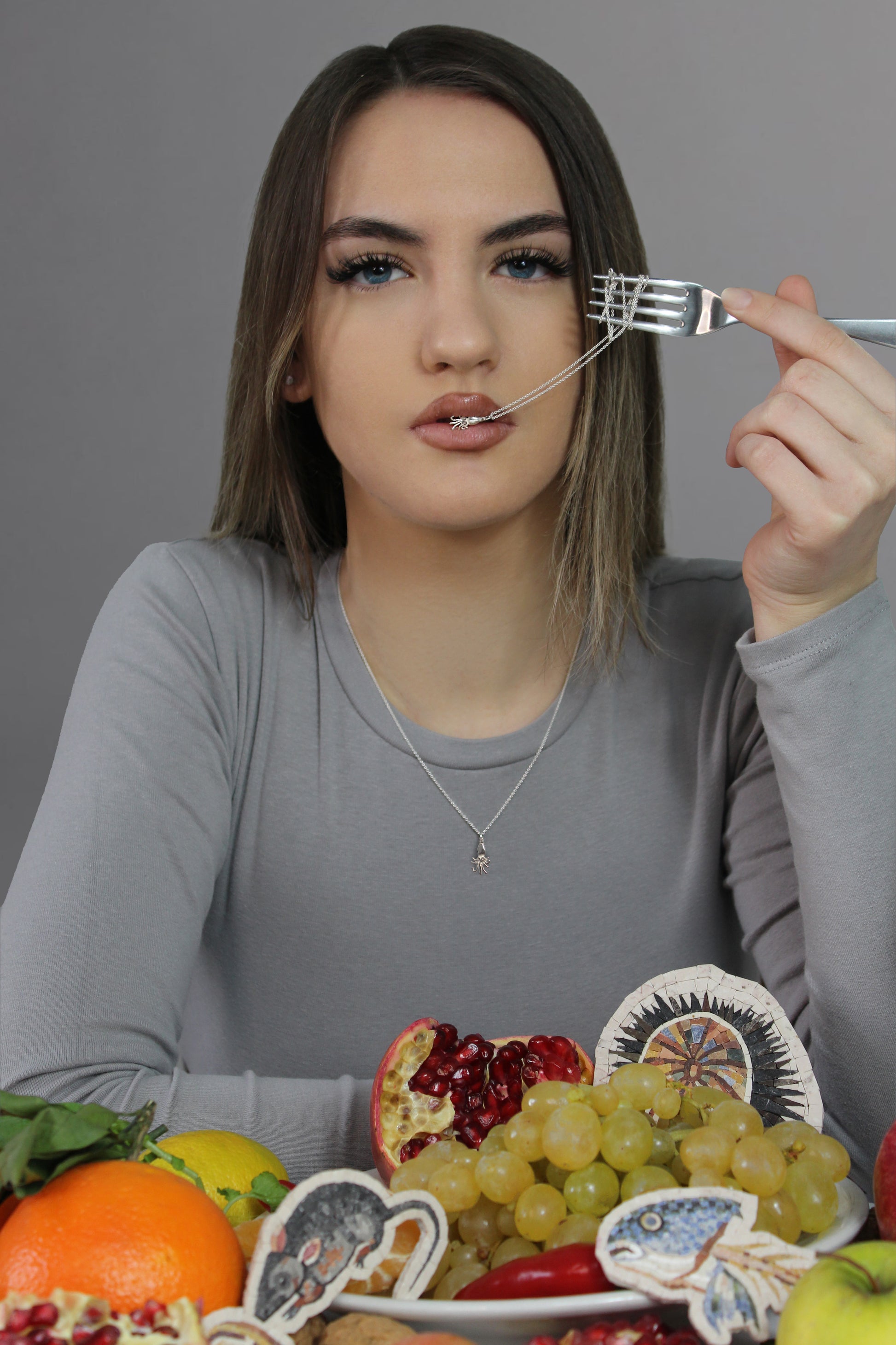 Der Calamaro-Anhänger entstand aus der Untersuchung eines bestimmten Elements, das in einer Art Mosaik namens Asaroton vorhanden ist.