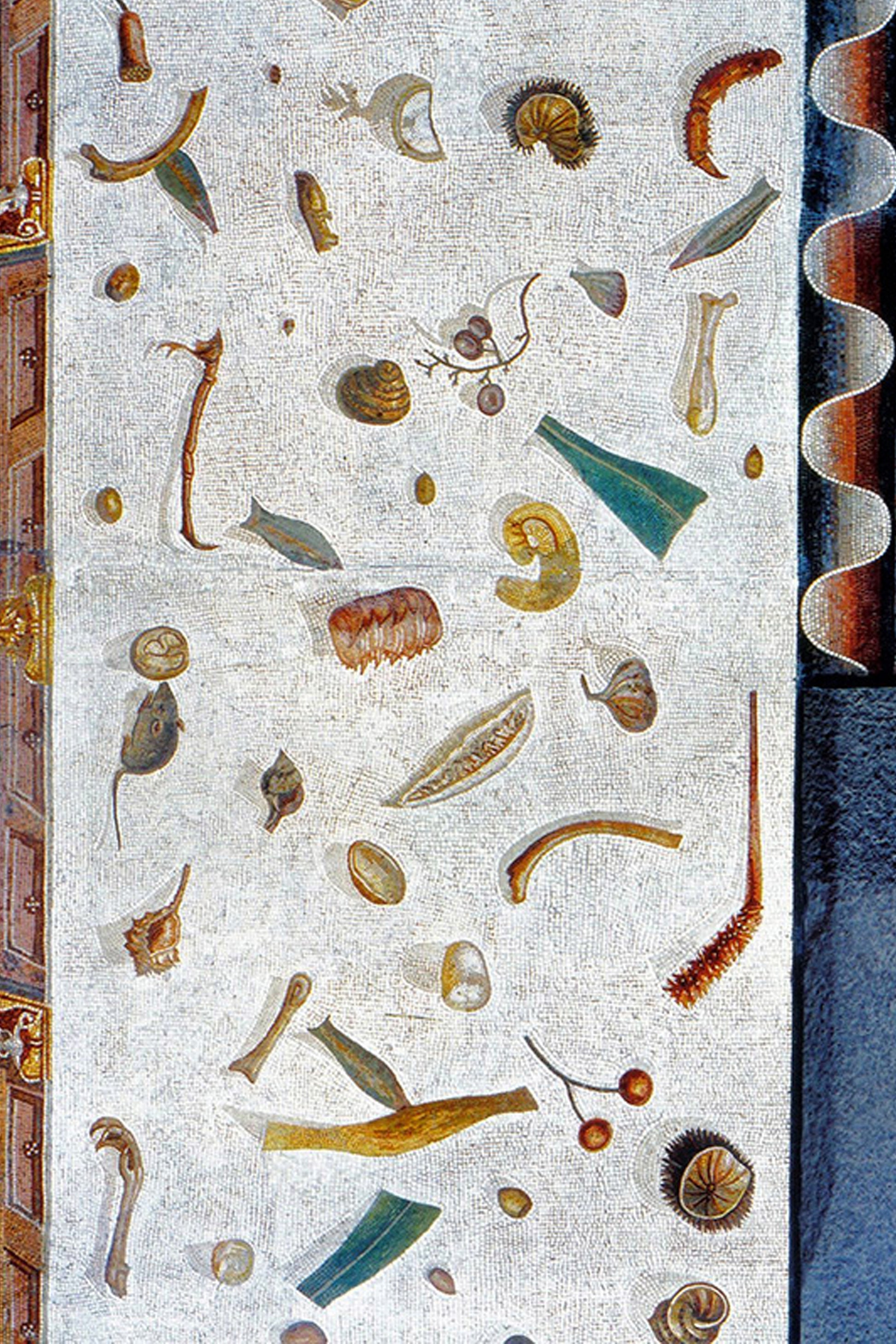 The Asaroton (or unswept floor) is a floor mosaic where abundant food remains are represented.