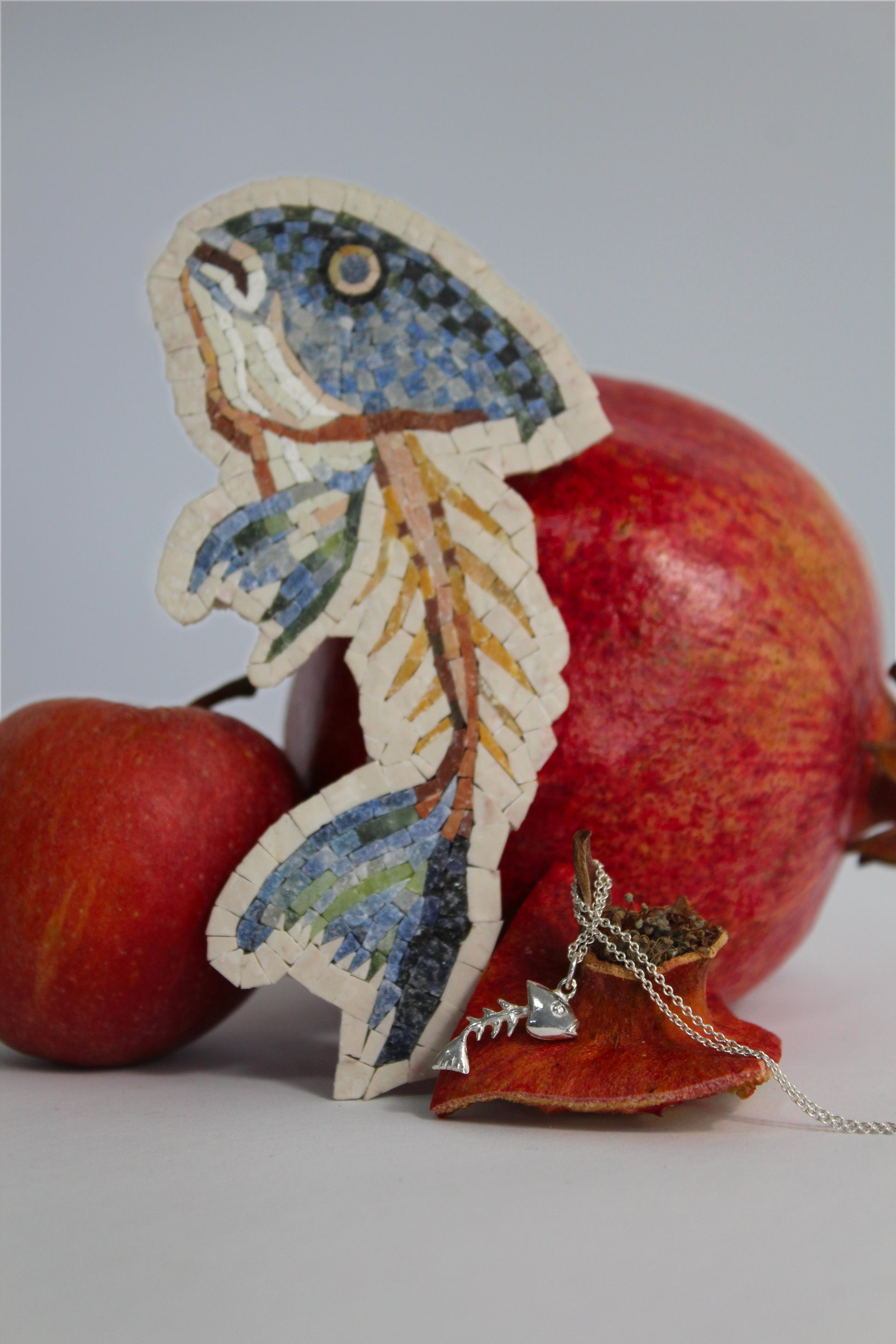 The Fishbone pendant was born from the study of a particular element present in a type of mosaic called Asaroton.