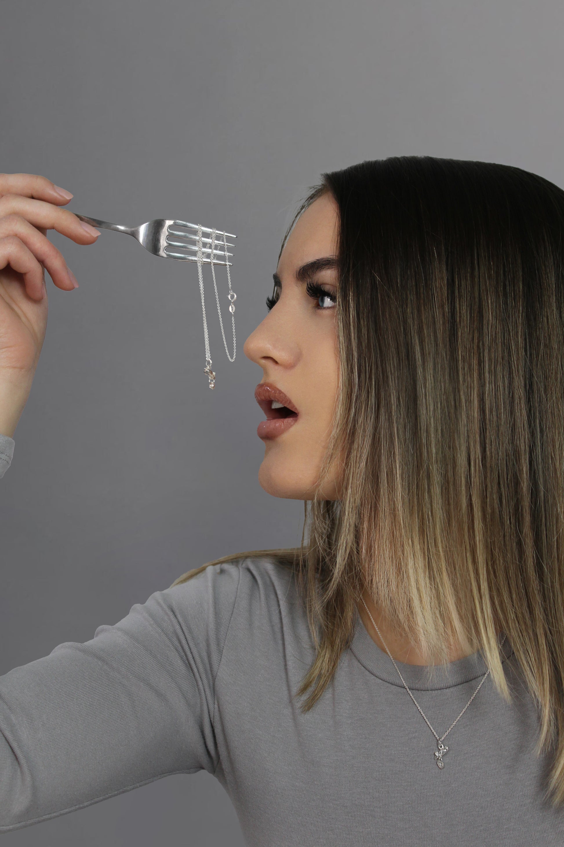 La base del ciondolo è in argento 800 ed è realizzata da una bottega orafa specializzata in gioielli storici.Ogni minima irregolarità di lucidatura o forma è voluta ed è il risultato di una lavorazione manuale.